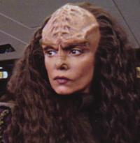 Im Jahr 2369 untersuchte Sie einen revolutionär neuen metaphasischen Schild an Bord des Föderations-Raumschiffes USS Enterprise 1701-D. Als der Erfinder dieses Schildes, der Ferengi Dr. Reyga, ermordet wurde, geriet sie kurzfristig unter Verdacht, diesen Mord begangen zu haben, um sich selber als Erfinder des mataphasischen Schildes auszugeben. Dieser Verdacht wurde beseitigt, als der Takaraner Jo'Bril als Mörder identifiziert wurde. (gespielt von Tricia O'Neil) Quellen: